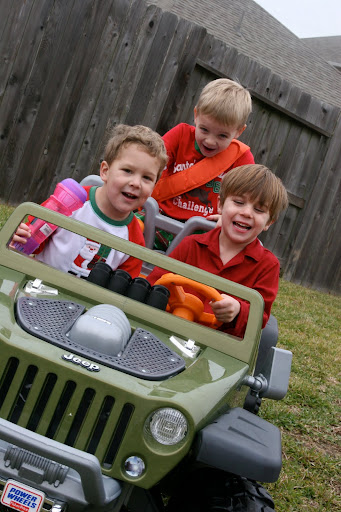 Pure joy on these boys' faces. Brooks, Caden, & Justin would take turns as to who was on the back and who rode in front. Justin was carrying around the pink megaphone and would sing into it while riding around in the yard.
